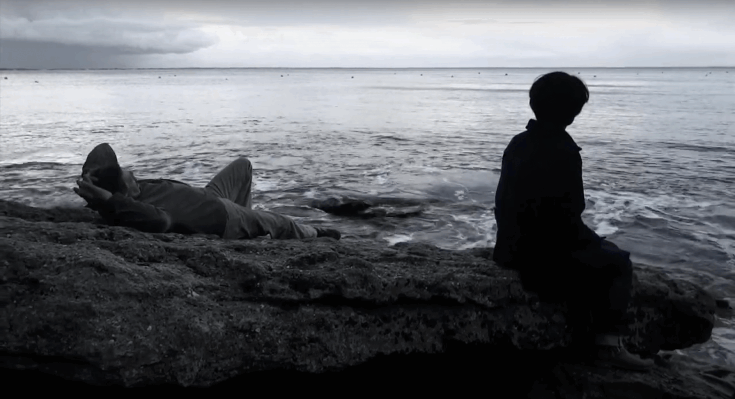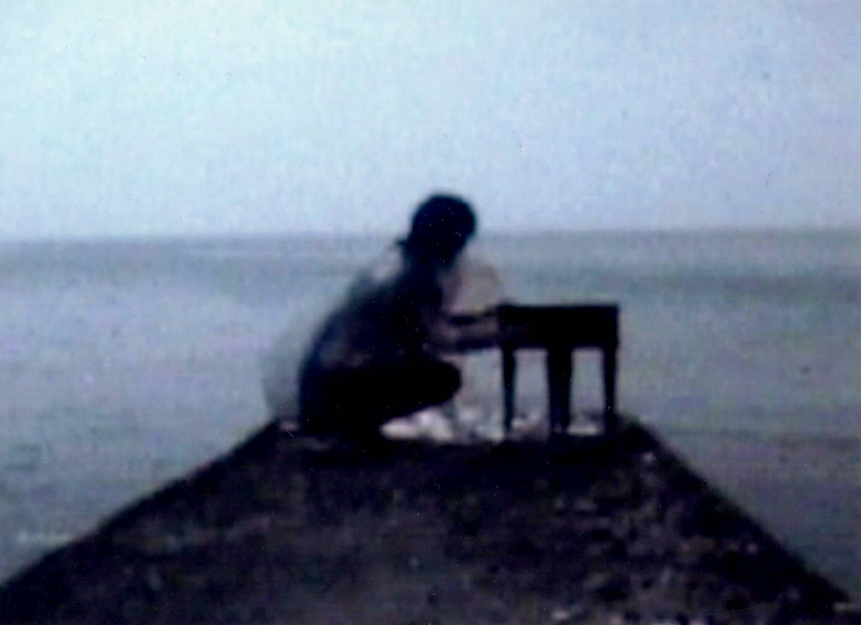 Une partie se joue entre une mère et son fils. Mémé domine la partie et crache au visage de papa les résidus de ses pions comestibles. L’histoire, proche de celle d’un conte, tente de nous faire croire que l’espace sous la table de jeu, nous emmène dans les bois où papa entame une marche au rythme soutenu, suivi avec difficultés de mère grand. Lorsque le paysage s’ouvre sur la mer, le fils porte sa mère fatiguée sur le dos et vient la déposer sur le sable. Elle restera là en attendant la mer remonter.