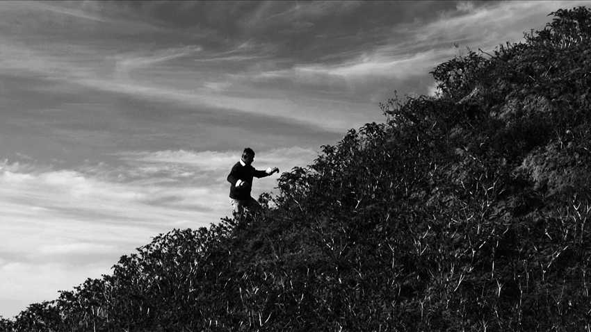 J’y éprouve les limites de la prise de vue. J’y contrarie la construction filmique. Habiter le lieu paysage devient ici une question existentielle, celle d’habiter le monde. Where is when est autant une réflexion sur la plasticité de l’image que sur les structures du récit. Elle concentre les regards sur ce qui se joue dans les représentations, dans les schémas de vision. Tout y est fabriqué et renvoie aux constructions fictionnelles qui façonnent les imaginaires.