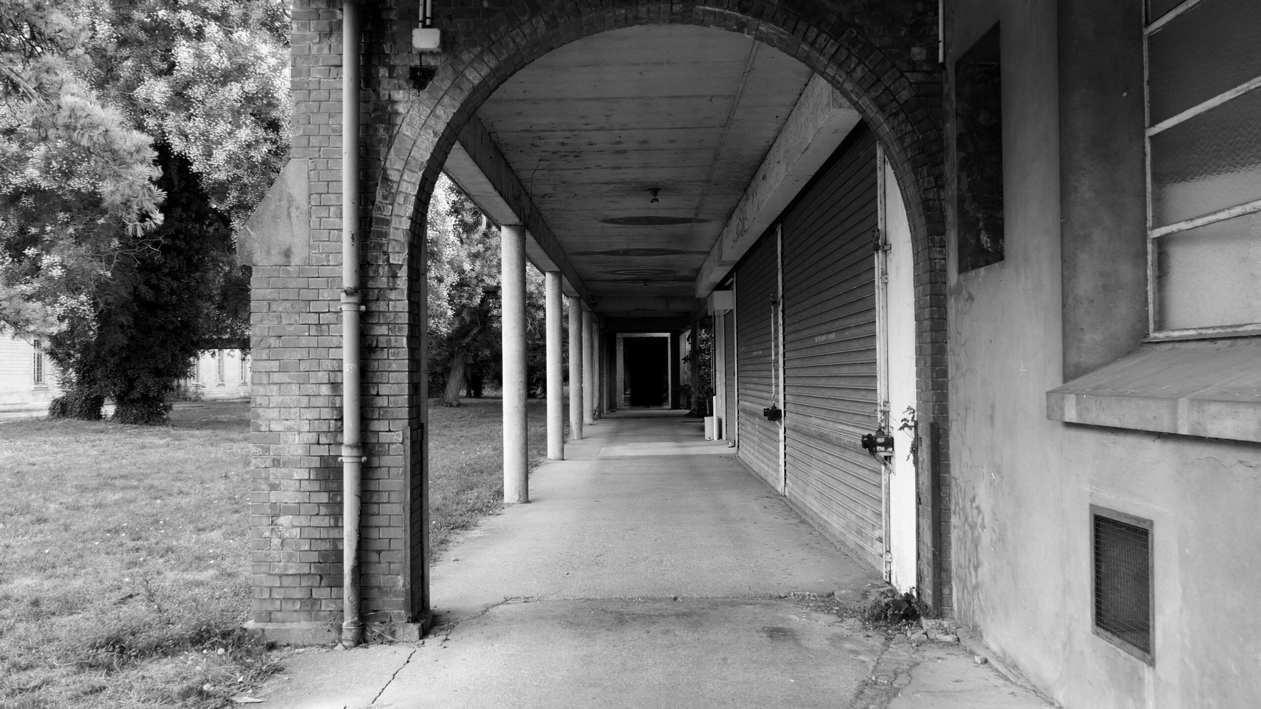 Dans La Poursuite, le lieu est un vélodrome désert, un espace en creux qu’on dirait en attente, une architecture exposée pour elle-même. Projecteurs éteints, escaliers déserts, gradins aux allées vides, sièges vacants. On découvre, plan après plan, cet anneau de béton entouré de zone d’observations et d’occupations accueillant en son centre un espace vert. S’établit entre les images une circularité singulière en fabriquant un cadre qui tourne sur lui-même, le temps défile en boucle dans un espace figé, un temps gelé. La Poursuite orchestre une partition d’espace/temps entre passé et présent, mémoire et événement.